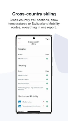 Swiss Snow oferece uma riqueza de informações atualizadas diversas vezes ao dia, garantindo que você tenha acesso aos dados mais precisos e recentes sobre as condições de neve e o status das infraestruturas de esqui. Seja para esquiar, praticar snowboard, explorar trilhas de esqui de fundo, descer de tobogã ou embarcar em caminhadas invernais, o banco de dados abrangente do aplicativo cobre todas as suas paixões, fornecendo detalhes cruciais para cada esporte e local.